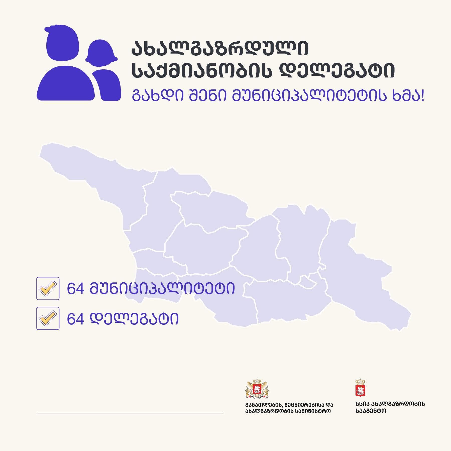 საქართველოს 64 მუნიციპალიტეტიდან შეირჩევა თითო ახალგაზრდა დელეგატი.